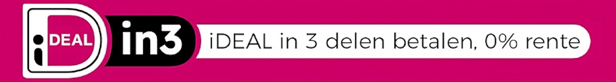 Betaalt u uw aankoop liever niet in één keer? Maak dan gebruik van onze renteloze gespreid betaalmethode in3. U betaalt het aankoopbedrag in 3 termijnen zonder extra kosten. Zo koopt u binnen uw budget, uw product. Het minimale bestelbedrag is € 100,- en het maximale bestelbedrag is € 3.000,-.
