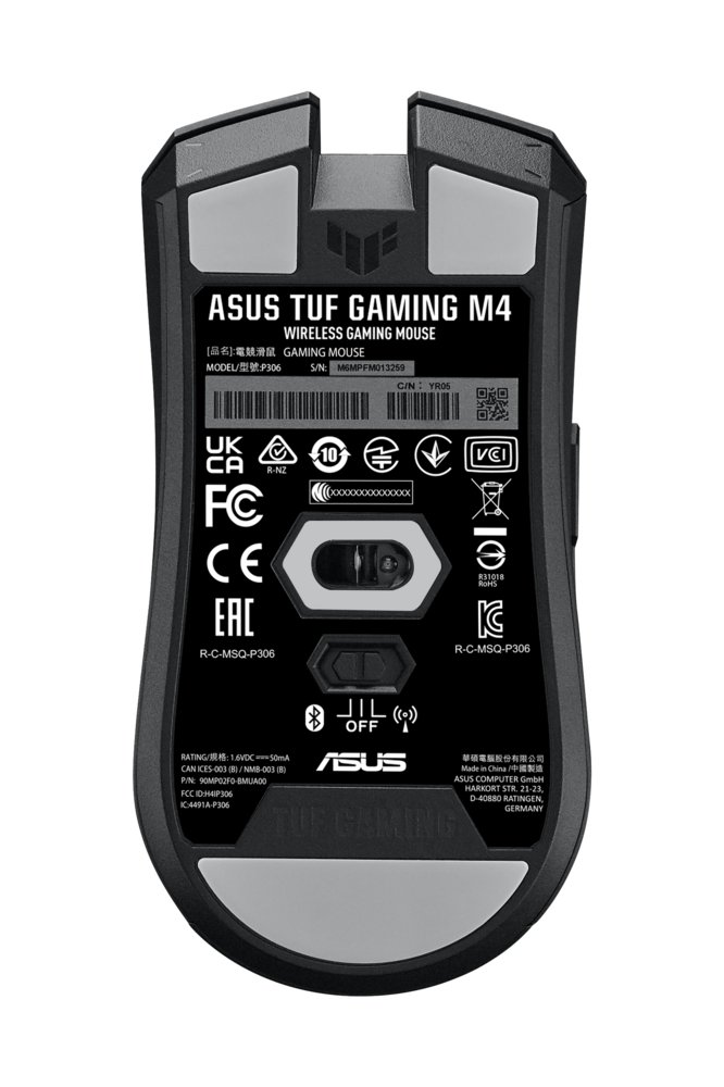 De 100% polytetrafluoroethyleen (PTFE) muisvoetjes op de TUF Gaming M4 Wireless zorgen ervoor dat hij soepel over elk muismatoppervlak glijdt.