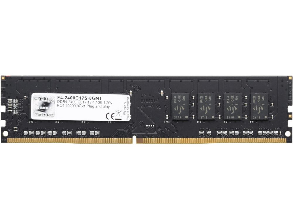 G.Skill Value. Component voor: Pc/server, Intern geheugen: 8 GB, Geheugenlayout (modules x formaat): 1 x 8 GB, Intern geheugentype: DDR4, Kloksnelheid geheugen: 2400 MHz, CAS-latentie: 17