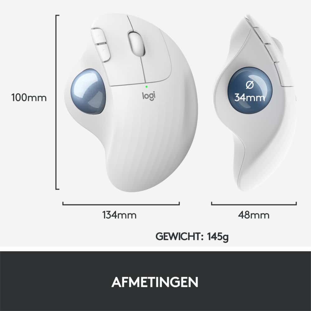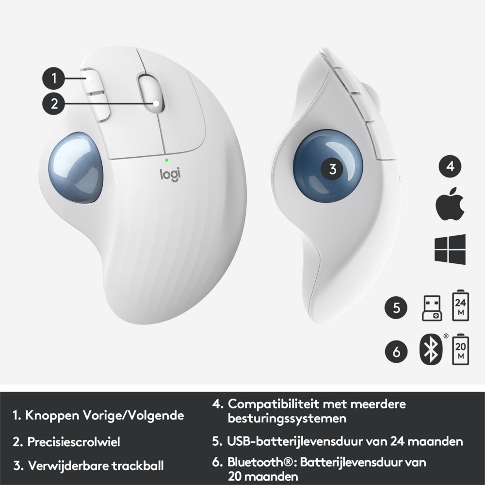 Logitech M575 Ergo Trackball | Ergonomische Draadloze Muis | Rechtshandig | RF + Bluetooth | 2000 DPI | Wit